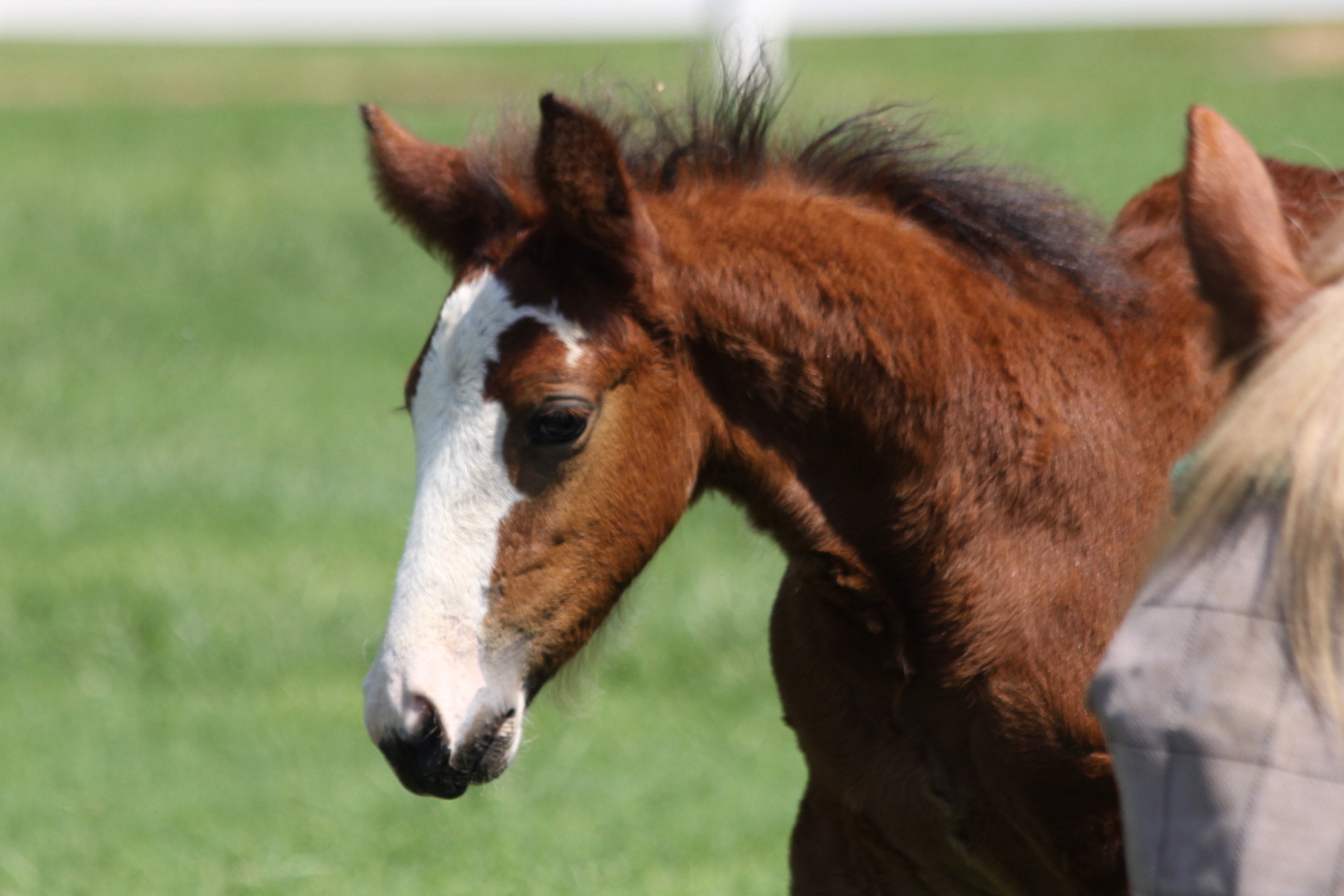Beer Money is a promising colt. In his early days, he was very cautious and shy with people. That switched overnight and now he is very friendly and loves to be scratched. He is fairly outgoing and can handle quite a few children rubbing on him at once. He is still the mamma’s boy and is looking like he will develop his sire’s build.