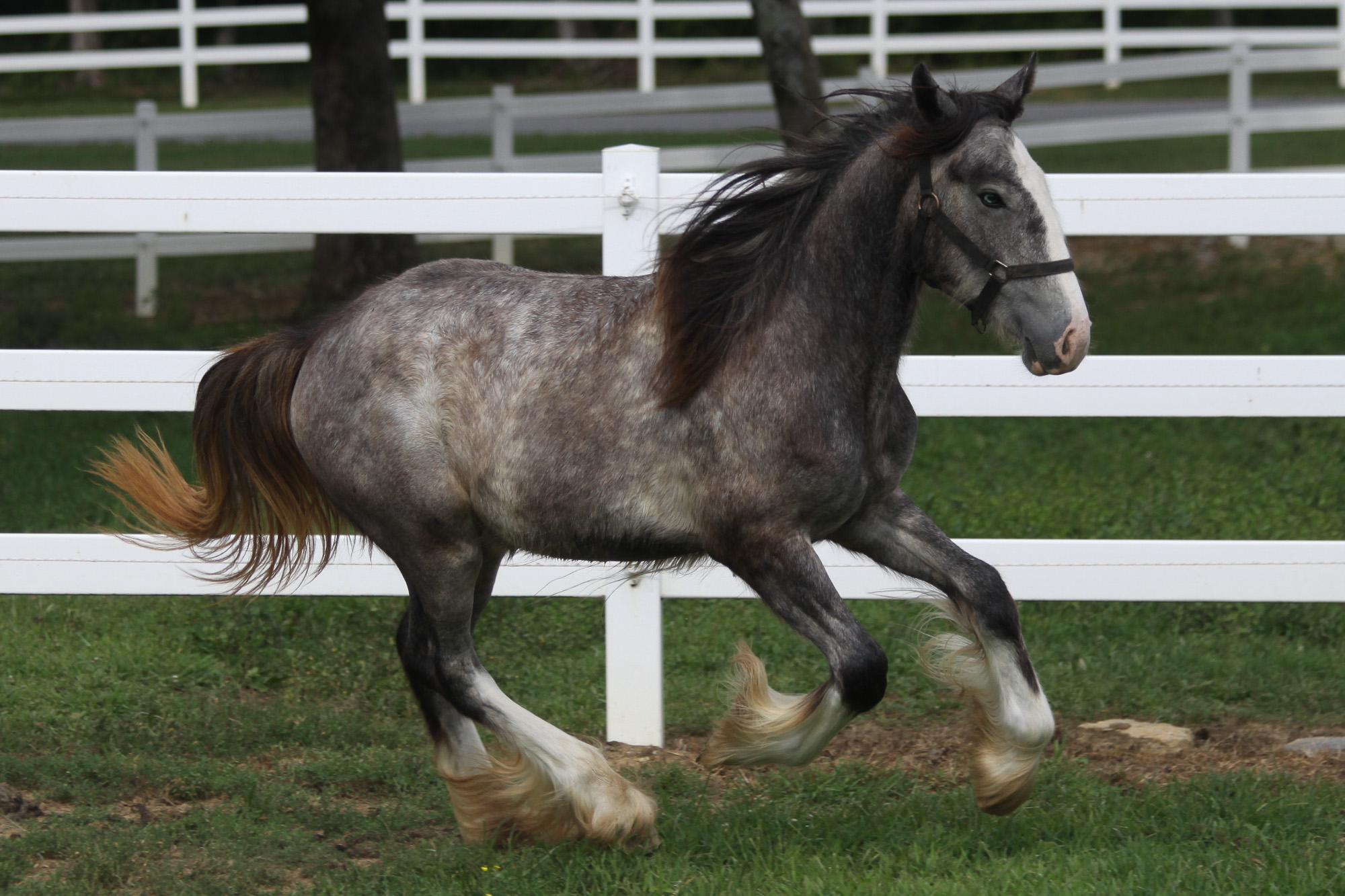 Blueberry is an extremely sweet, in your pocket kind of mare. She has plenty of feathering, mane, and tail. Blueberry is a wonderful Gypsy mare who has been a great addition to our group of broodmares. She has not lacked what so ever in producing quality foals. Read More| Tobiano | |