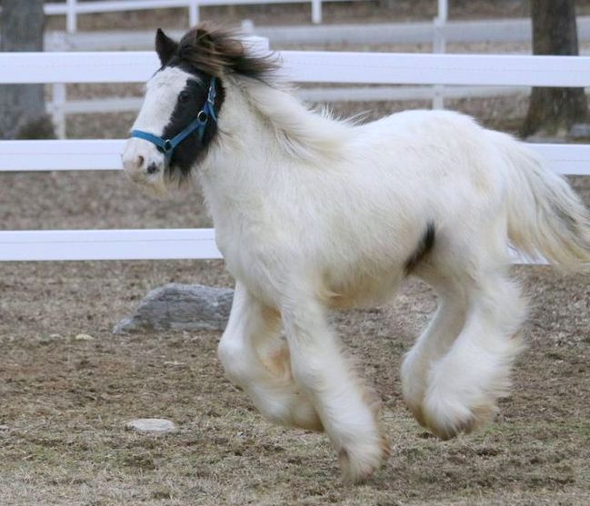 Kryptonite is a huge 2 yr old Gypsy gelding. His sire is our Mandarin Yacobee and he was one of Dreammakers’ last foals before he was gelded. He has the most feather we have seen on a horse his age. He has wonderful manners and LOVES cuddling. He has a sweet…- Breed: Gypsy Vanner, Gypsy Cob