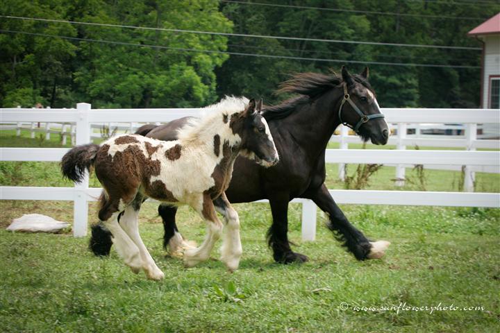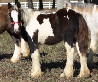 Halo is an adorable brown and white filly. She has a perfect little heart on her side. She runs right up to us in the foals pasture.- Breed: Gypsy Vanner
