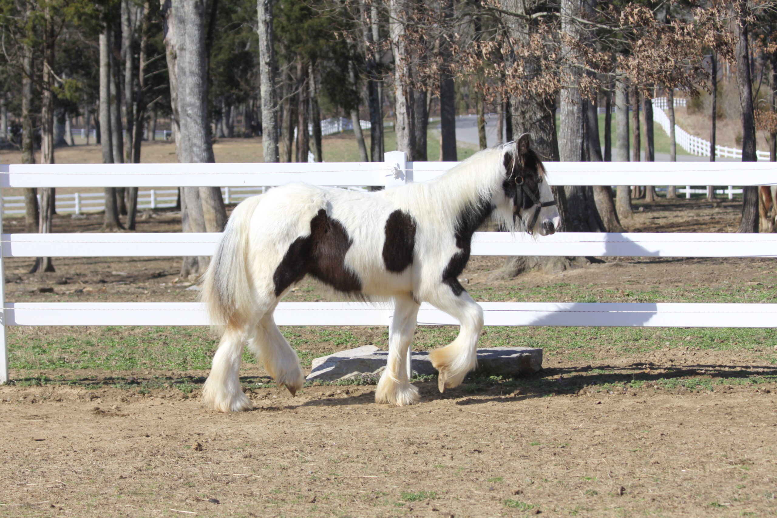 Magnum is an adorable little gelding. He loves people and other horses. He stands quietly for the vet, farrier, baths and grooming. His Dam is our Ginger Girl and he was one of Dreammakers’ last foals sired before Dreammaker was gelded. He is flashy, calm, trusting and loves people. No…- Breed: Gypsy Vanner, Gypsy Cob