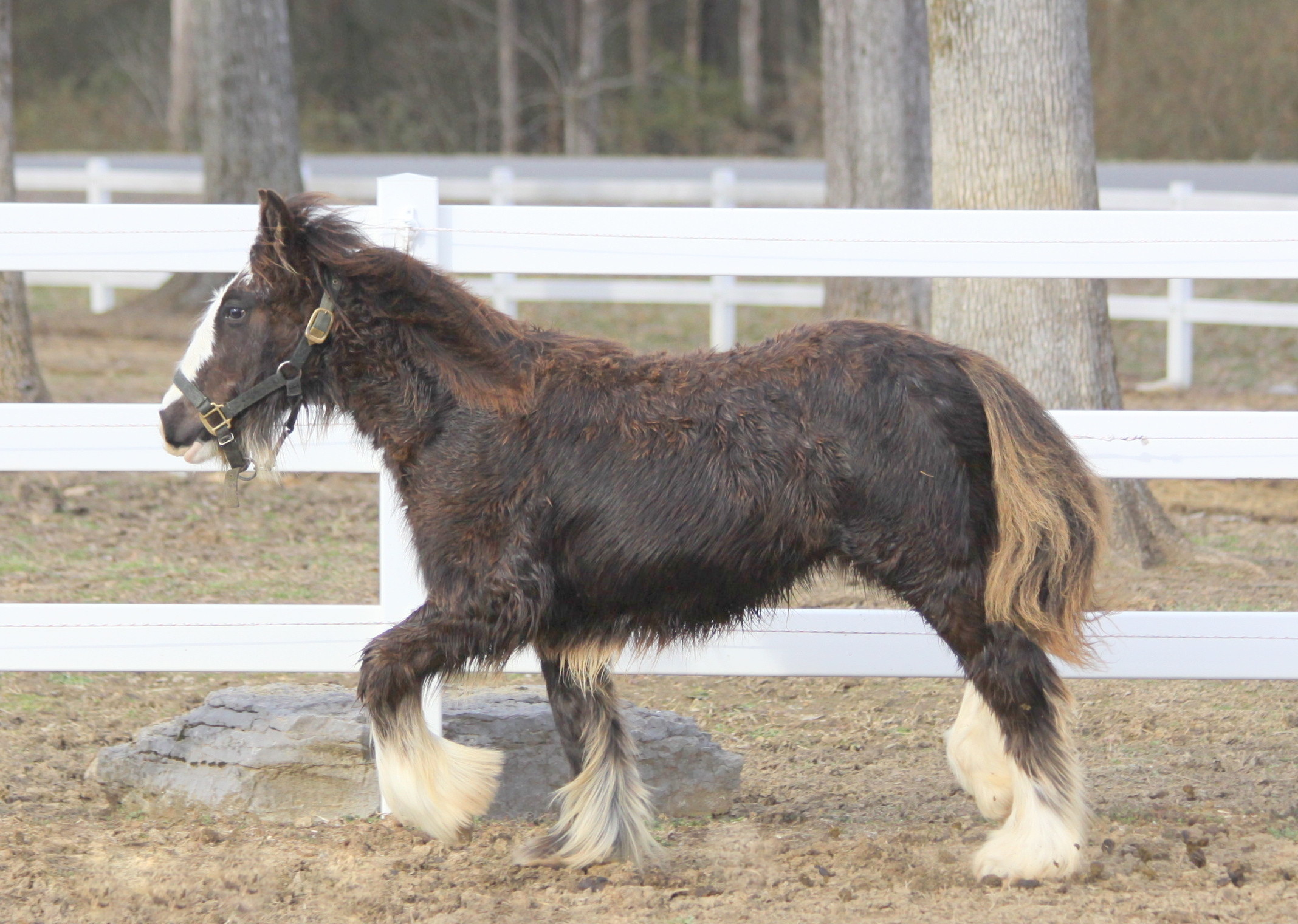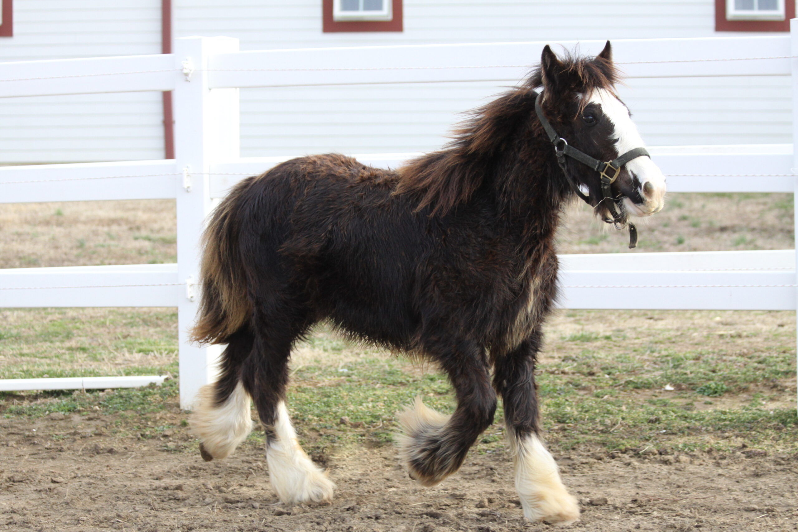 LexLin’s Midnight Pearl is beautiful black Gypsy Vanner filly. Her Sire is our BeesKnees and her Dam is Velvet. Love this little filly’s spunk and personality. She has great ground manners, stands for the vet, farrier, baths and grooming. We are currently working on loading and she leads wonderfully.- Breed: Gypsy Vanner, Gypsy Cob