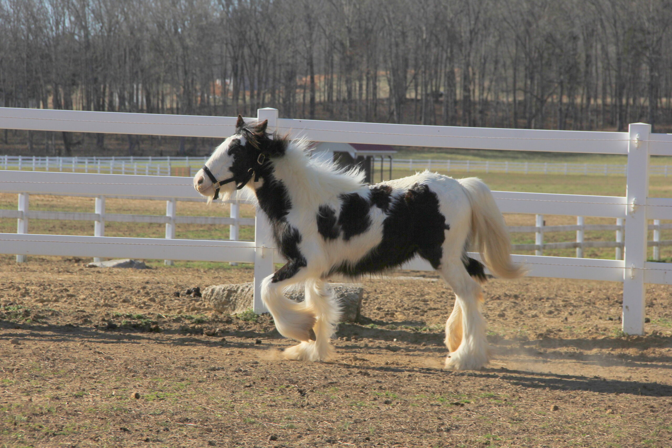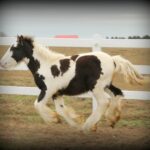 Oreo’s first foal is a stunning gelding by our stallion BeesKnees! He always looks like he is smiling 🙂 This is the sweetest, most loving gelding. He climbed in my lap a few moments after he was born and has absolutely loved everyone ever since. He has the cutest markings….- Breed: Gypsy Vanner, Gypsy Cob