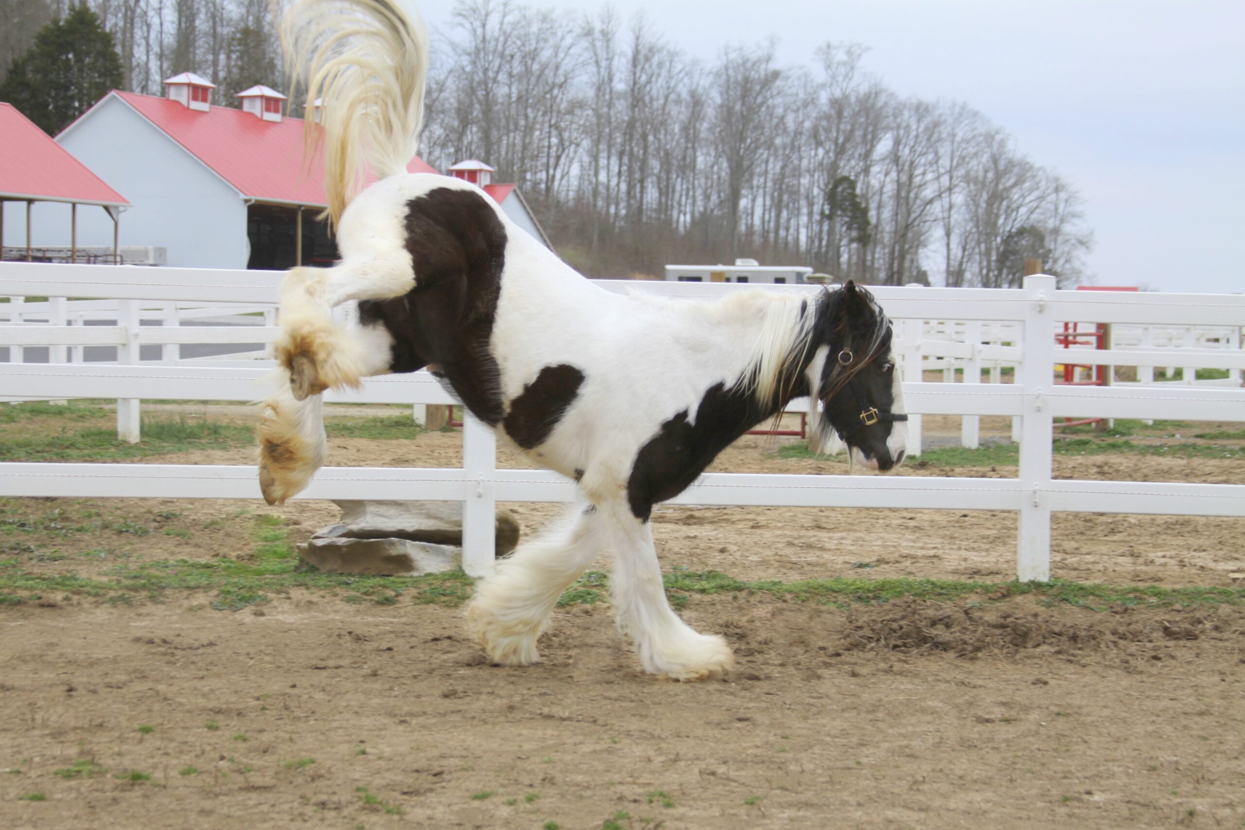 Shamrock’s Girl is an eye catching Gypsy Vanner mare. She is a black and white Tobiano with the pearl gene. Her sire is our well known Gypsy Vanner stallion The Producer and her dam is T.P.’s Shamrock. She would make a great all around prospect with her level headed temperament, great movement, correct conformation…- Breed: Gypsy Vanner, Gypsy Cob