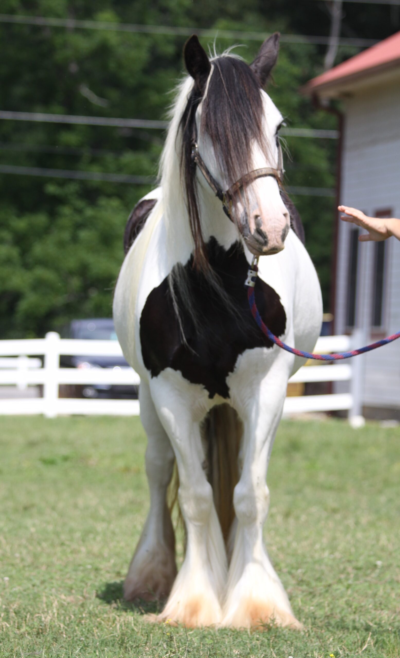 Snowdrift is a flashy mare with unique markings and a beautiful build. She is a bit on the shy side until she becomes acquainted. She is quiet and is content to stand beside you. She is a curious mare, but is not pushy at all with her affections. She has…- Breed: Gypsy Vanner, Gypsy Cob